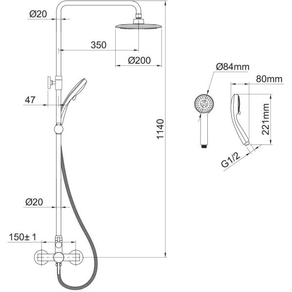 | Розмір верхнього душу | 200 мм |
