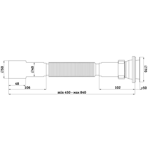 Гофросифон для умивальника Ані-Пласт 'G 106' 1 1/2х40/50 призначений для установки з будь-якою сантехнічною арматурою. Завдяки наявності гнучкої відвідної труби, сифон дозволяє легко розв'язувати проблему відведення стічних вод в умовах обмеженого простору.