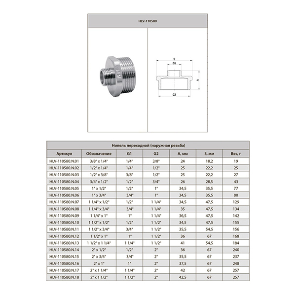 Ніпель HLV з циліндричною трубною різьбою, виготовлений методом лиття під тиском і призначений для з'єднання водо- і газопровідних труб із застосуванням ущільнювача в системах опалення, водопроводу, газопроводу. Вся сантехніка має сертифікати якості та санітарно-гігієнічні висновки.