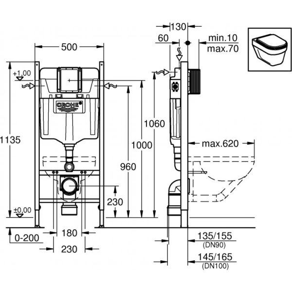 Інсталяція для унітазу Grohe Rapid SL 3 в 1. Прокладка і кріплення до стіни входить в комплект.