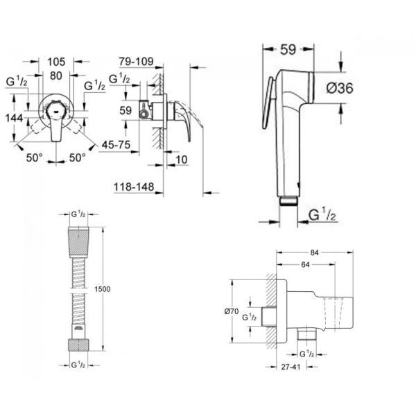 Комплект для гігієнічного душу Grohe BauCurve з New Tempesta-F UA11144400