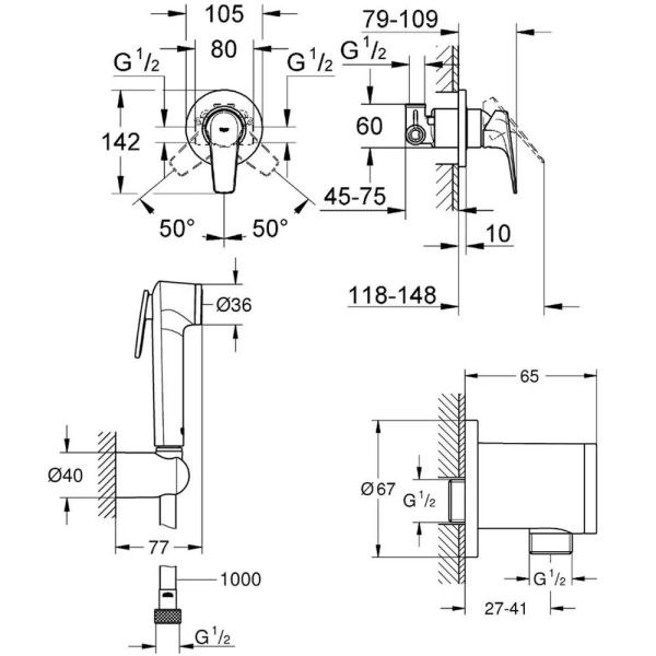 Комплект для гігієнічного душу Grohe BauFlow з Tempesta-F UA12164501