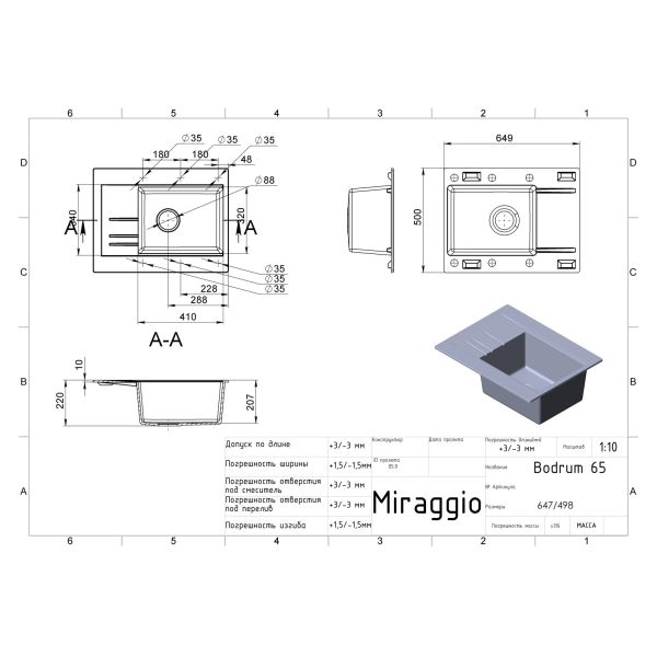 Кухонна мийка MIRAGGIO Bodrum виготовлена з кварцового піску. Вона витримує перепади температур, стійка до забруднень і практична у використанні. Матеріал, з якого вона виготовлена складається з 80% кварцового піску різних фракцій і 20% сполучної речовини (поліефірної смоли) зі спеціальними антибактеріальними добавками, що забезпечує надійність, якість і довговічність продукту.
