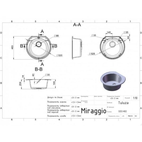 Кухонна мийка MIRAGGIO Malibu виготовлена з кварцового піску. Вона витримує перепади температур, стійка до забруднень і практична у використанні. Матеріал, з якого вона виготовлена складається з 80% кварцового піску різних фракцій і 20% сполучної речовини (поліефірної смоли) зі спеціальними антибактеріальними добавками, що забезпечує надійність, якість і довговічність продукту.
