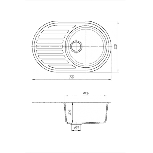 Кухонна мийка компанії Argo серії ALBERO виготовлена із штучного граніту (80% гранітної крихти, 20% акрилової смоли), має стійку до механічних пошкоджень матову поверхню та овальну форму, витримує температуру до +280°C. Розміри мийки (ШхВхГ): 770х500х200 мм, розміри чаші (ШхВхГ): 410х410х200 мм. Підходить до ширини шафи від 450 мм. Має крило, що дуже практичне у використанні кухонної мийки.