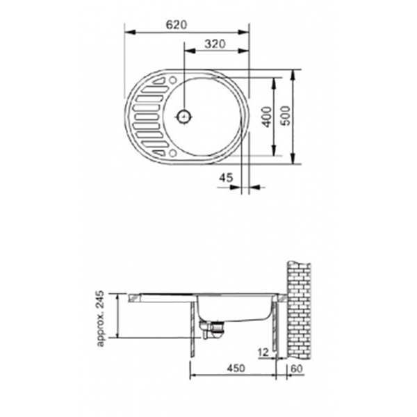 Кухонна мийка компанії Argo серії OVALE виготовлена зі штучного граніту (80% гранітної крихти, 20% акрилової смоли), має стійку до механічних пошкоджень поверхню та овальну форму, витримує температуру до +280°C. Габарити мийки (ШхВхГ): 620х500х200 мм, розміри чаші (ШхВхГ): 400х400х200 мм. Підходить до шафи шириною від 500мм. Має невелике крило, що дуже практично та зручно у використанні кухонного мийки.
