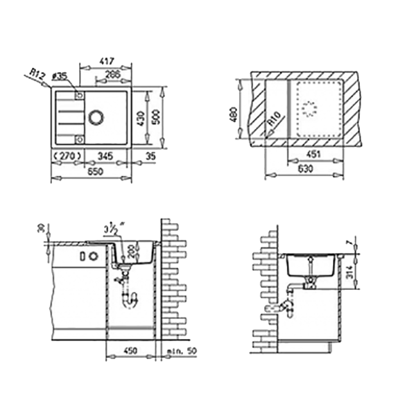 Кухонна мийка компанії Argo серії STELLA виготовлена зі штучного граніту (80% гранітної крихти, 20% акрилової смоли), має стійку до механічних пошкоджень поверхню та прямокутну форму, витримує температуру до +280°C. Габарити мийки (ШхВхГ): 650х500х200 мм, розміри чаші (ШхВхГ): 430х345х200 мм. Підходить до шафи шириною від 600мм. Має невелике крило, що дуже практично та зручно у використанні кухонної мийки.
