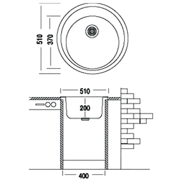 Кухонна мийка компанії Argo серії TONDO виготовлена зі штучного граніту (80% гранітної крихти, 20% акрилової смоли), має стійку до механічних пошкоджень поверхню та овальну форму, витримує температуру до +280°C. Габарити мийки (ШхВхГ): 510х510х200 мм, розміри основної чаші (ШхВхГ): 370х370х200 мм. Підходить до шафи шириною від 600мм. Має невелике крило, що дуже практично та зручно у використанні кухонної мийки.