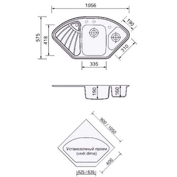 | Отвір під змішувач | є |