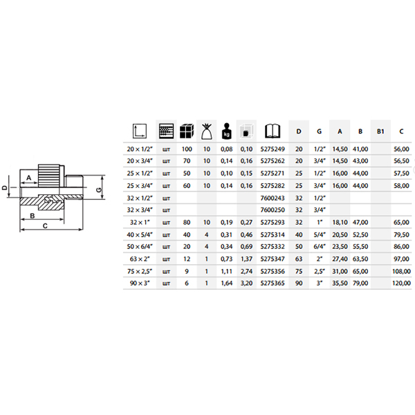 | Розмір підключення | 40x1 1/4 мм/дюйм |