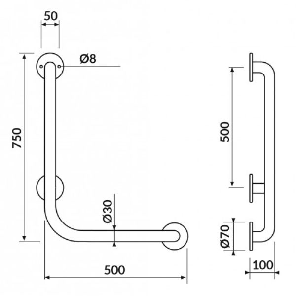 Поручень настінний горизонтально-вертикальний 50*70 см Cersanit правосторонній K97-031