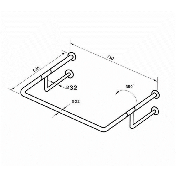 Поручень для мийки 'стіна-стіна' Еверест Компані d 32мм - 530х710 мм, арт. PM-03