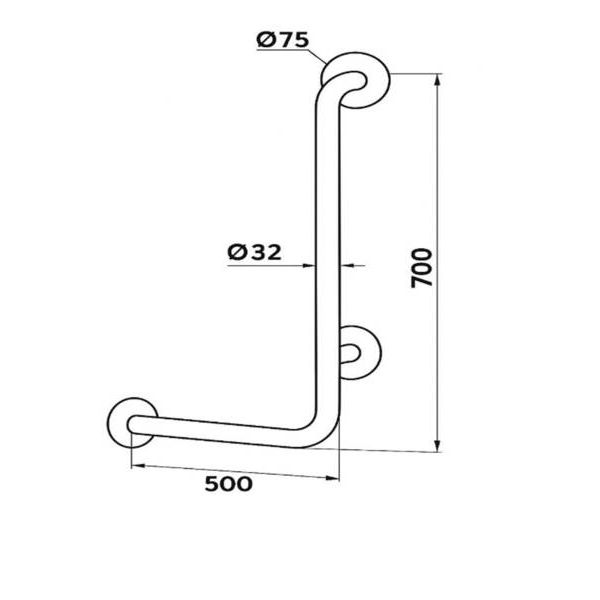 Кутовий поручень призначений для використання в санвузлі, ванній кімнаті та інших приміщеннях, де хворим та ослабленим людям необхідна додаткова опора під час підйому та переміщення. Кутова форма поручня сприяє кращому утриманню. Кріплення поручня проводиться кріпильними елементами з фіксацією у трьох точках.