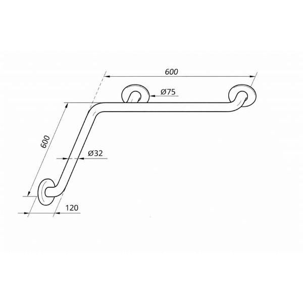Поручень кутовий внутрішній Еверест Компані d 32м - 600x600 мм, арт. PV-04