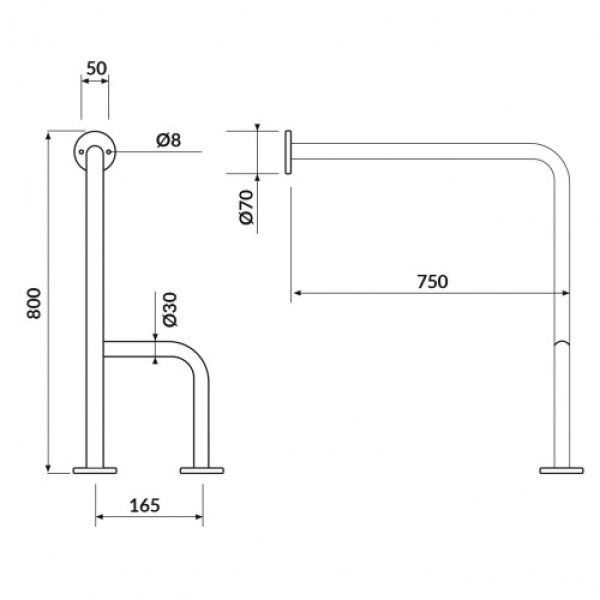 Поручень настінно-підлоговий 75*80 см Cersanit правосторонній K97-037