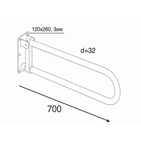 Поручень пристінний відкидний Еверест Компані d 32м-700мм, арт. PU-05