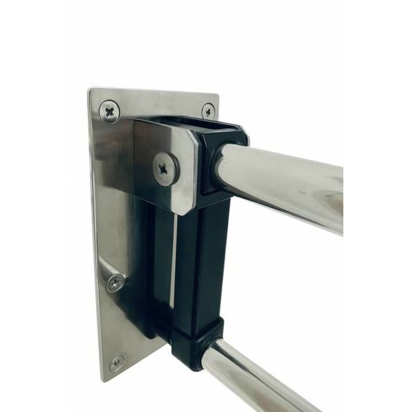 Цей поручень встановлюється з однієї або двох сторін біля унітазу. Відкидна конструкція не заважає переміщенню, процесу вбирання та використання унітазу іншим членами сім'ї.