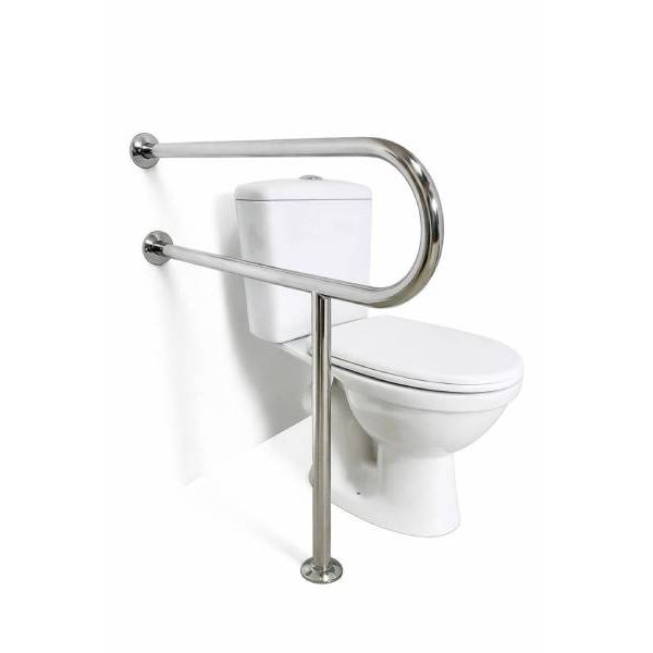 Поручень стаціонарний посилений для унітазу забезпечує додаткову точку опори. Цей поручень має стабільну міцність завдяки кріпленням до стіни 2 шт., а також до підлоги – 1 шт.