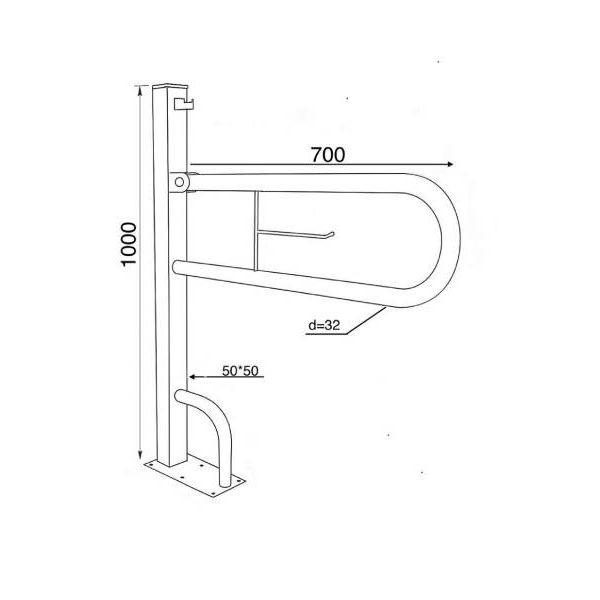 Даний поручень посилений завдяки додатковій опорі і зазвичай використовується поруч з унітазом або умивальником, коли кріплення до стіни не бажане або неможливе. Конструкція, що відкидається, не заважає переміщенню, прибиранню та використанню умивальника або унітазу іншим членами сім'ї.