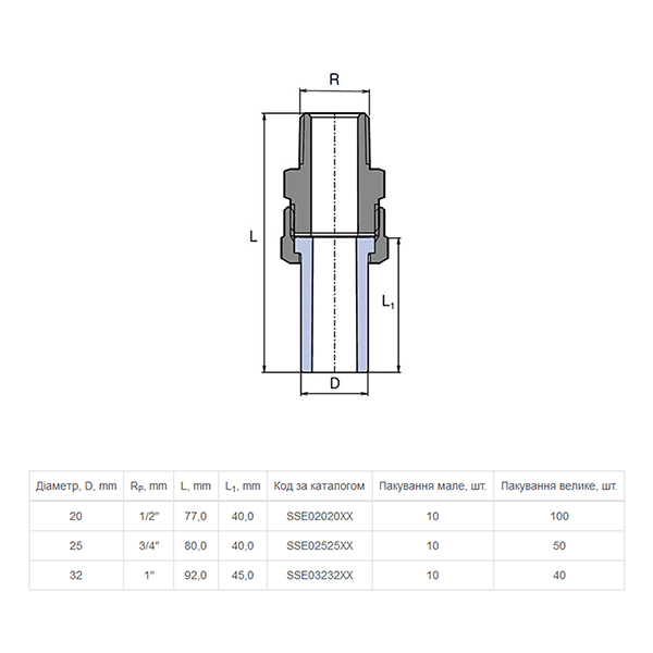 Різьбове з'єднання PPR Ekoplastik 25 мм ЗЗ 3/4' SSE02525XX