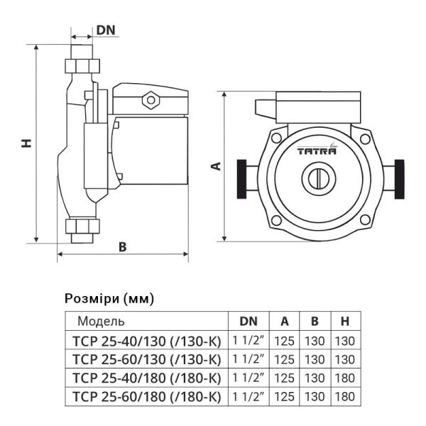 Циркуляционный насос TATRA-line TCP 25-40/180 (без кабеля)