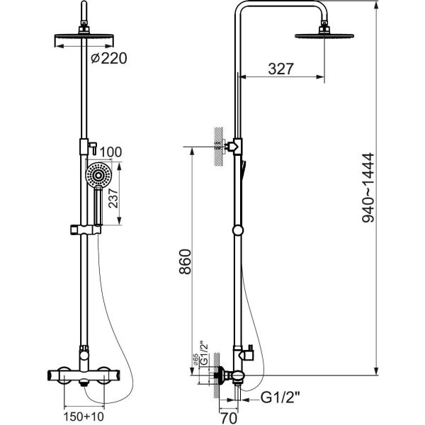 | Размер верхнего душа | 220 мм |