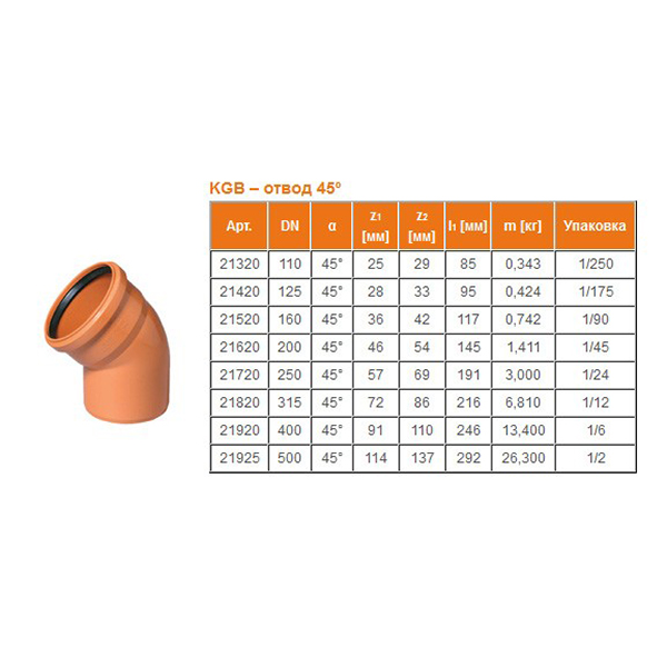 Колено наружное OSTENDORF KGB ф110мм х45°