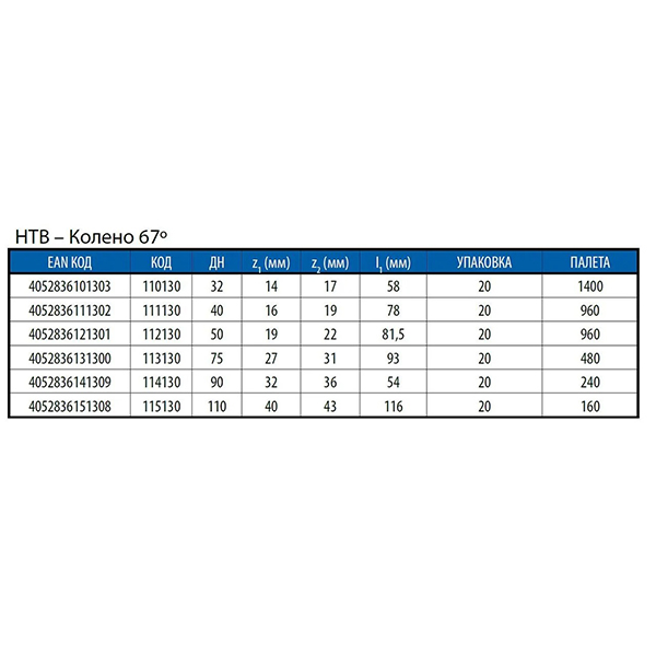 Колено внутреннее OSTENDORF HT Safe ф110мм x67°