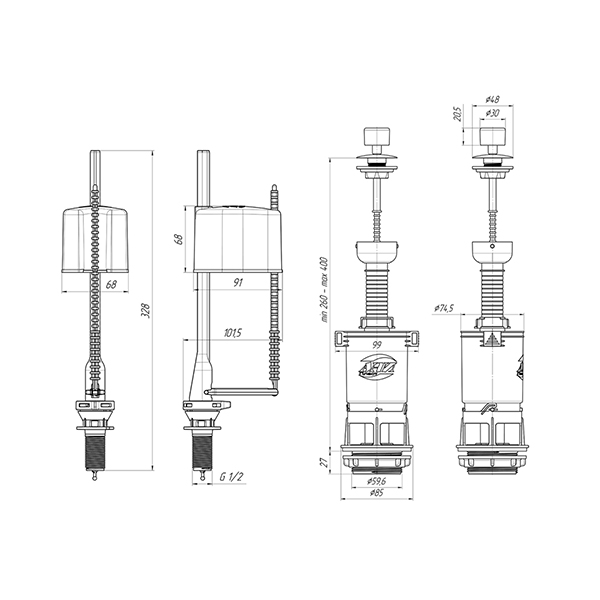 | Высота регулировки поплавка | 260-400 мм |