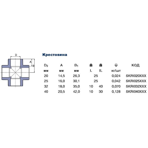 Крестовина PPR Ekoplastik 25 мм SKRI025XXX