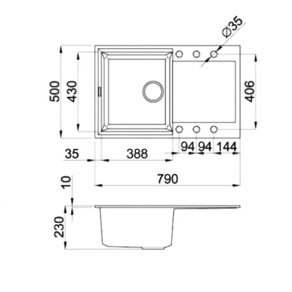 | Отверстие под смеситель | есть |