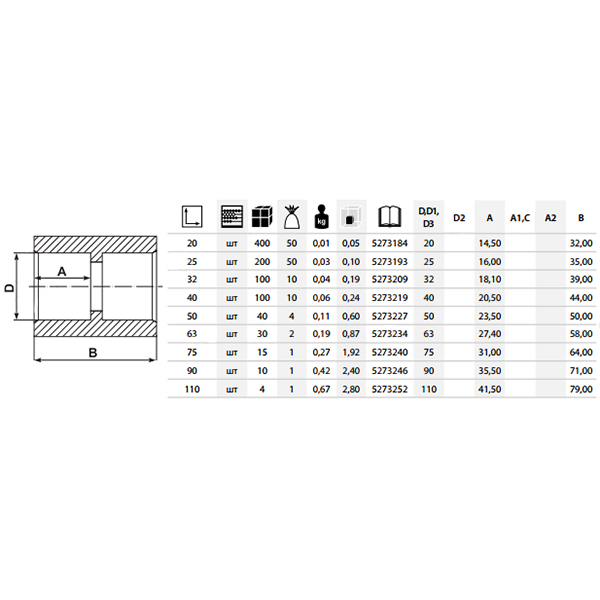 Муфта соединительная PPR ASG 110 мм 1415273252