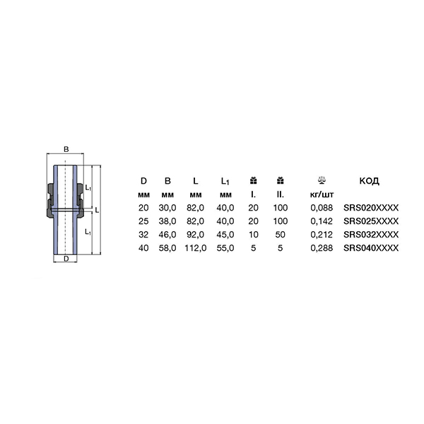 Разборное соединение PPR Ekoplastik 25 мм SRS025XXXX