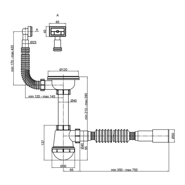 | Высота сифона | 210-280 мм |