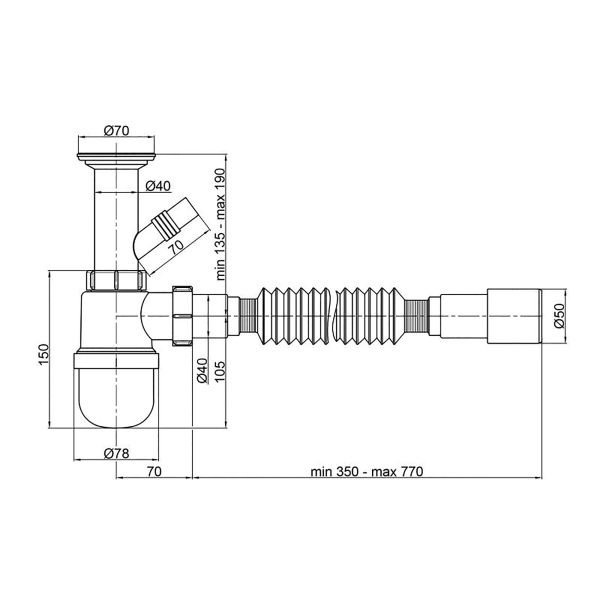 Сифон для раковины PLM PM 40 SF 20 03 имеет вид колбы изготовлен из пластика белого цвета. Изделие обладает гладкой внутренней поверхностью, что препятствует накоплению грязи на стенках. Резервуар колбы легко снимается, поэтому его очистка от осевших твердых частиц не составит больших хлопот. Гофрированный выход дает возможность изменять длину и угол трубы. Данный сифон имеет отдельный вывод для подключения бытовых приборов использующих воду.