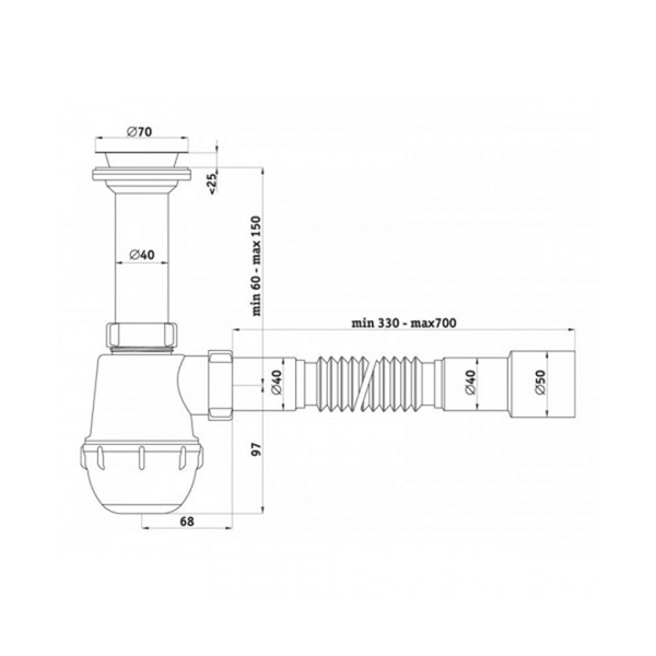 Сифон для кухни Ани-Пласт 'А 05 15' 1 1/2'х40 (литая горловина) с гибкой трубой 40*40/50 предназначен для установки с любой сантехнической арматурой. Благодаря наличию гибкой отводной трубы, сифон позволяет легко решить проблему отвода сточных вод в условиях ограниченного пространства.