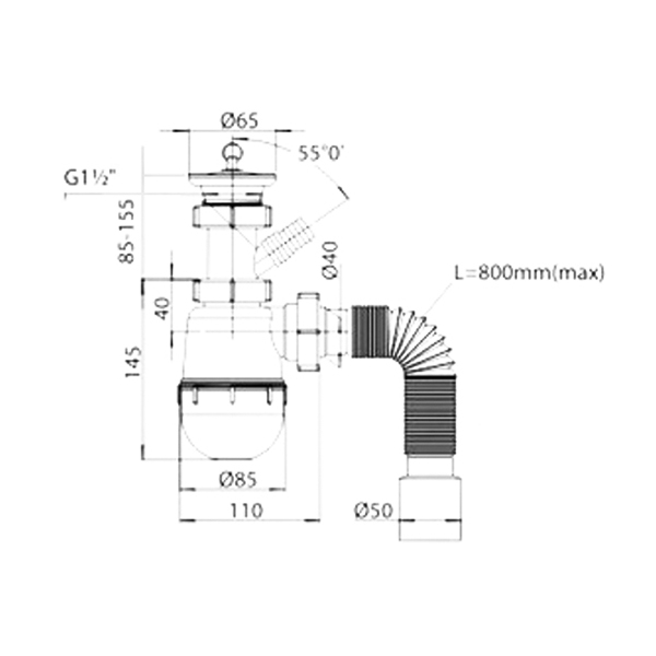 Сифон для кухни SoloPlast 'Кухня Элит К1100' 1 1/2'x40 с отводом под стиральную машину. Конструкция сифона предусматривает надежное формирование гидрозатвора, что препятствует попаданию неприятных запахов и способна справиться с большим потоком воды.