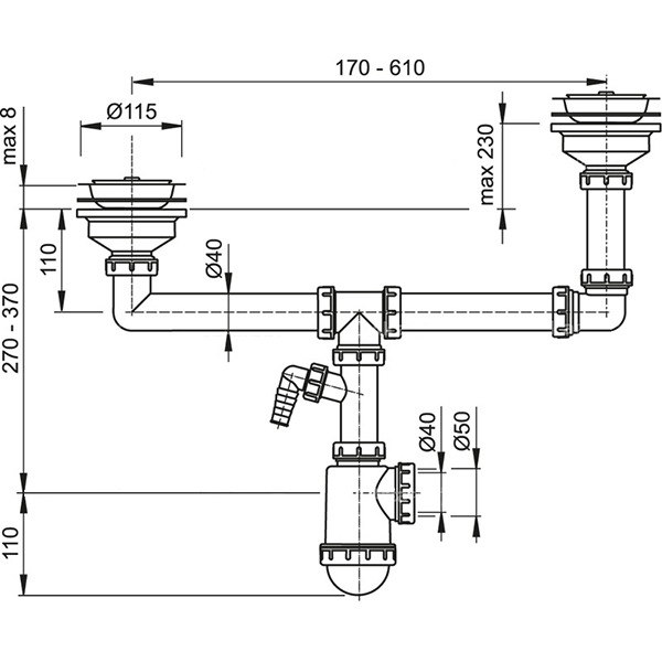 Сифон для сдвоенной мойки Alcaplast A454P