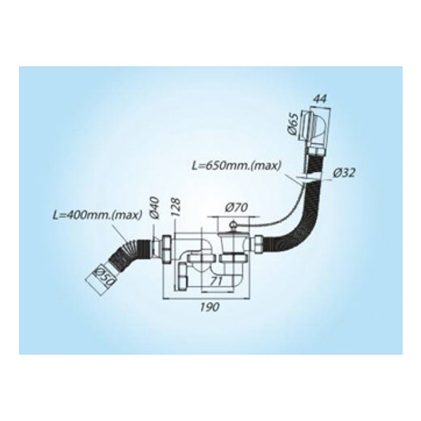 Сифон для ванны SoloPlast Регулируемый P0110 1 1/2' с выпуском и переливом с гибкой трубой 40x50 с пробкой. Конструкция сифона предусматривает надежное формирование гидрозатвора, что препятствует попаданию неприятных запахов и способна справиться с большим потоком воды.