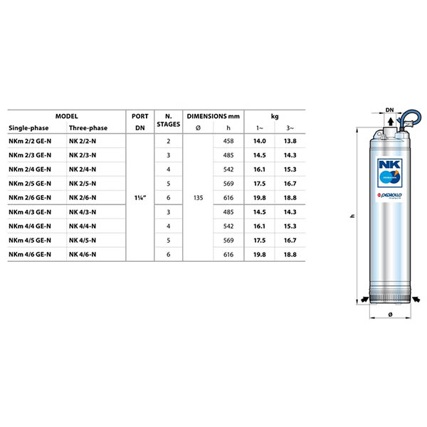 Насос Pedrollo NKM 4/5 -GE 1,1квт предназначен для перекачивания чистой воды. Габаритные размеры 570мм. Надежность работы и высокая эффективность предопределяют использование в широком круге задач: дренажи, подачи воды из колодцев, скважин, рек, озер и других водоемов.
