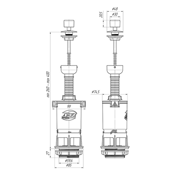 Сливной механизм производства Ani Plast с кнопкой хром. Экономичный расход воды можно настроить используя регулировку слива, которая позволит выставить необходимые параметры. Благодаря широкому диапазону регулировки по высоте данная модель подходит для смывных бочков различной высоты.