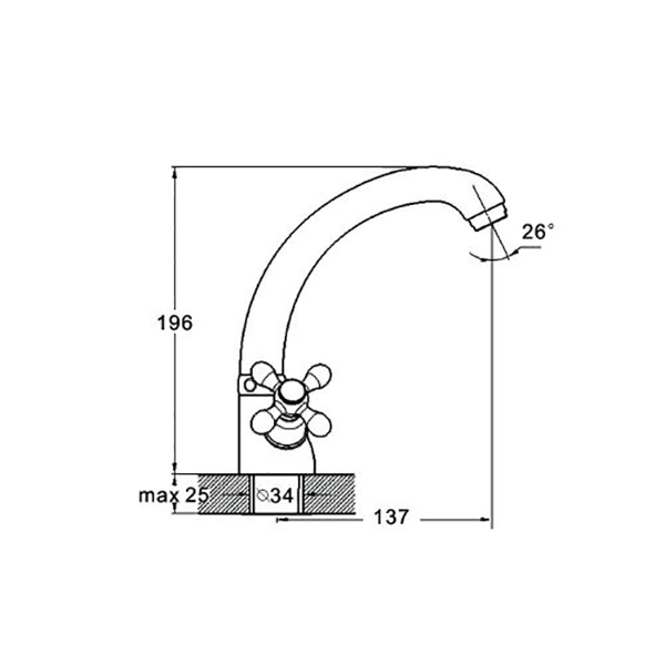 Смеситель марки G-Lauf серии QMT4-С722 используется для кухонной мойки, имеет изогнутый поворотный излив (гусак) 135 мм, двухвентильное управление. Конструкция сантехнического прибора - 'елочка'.