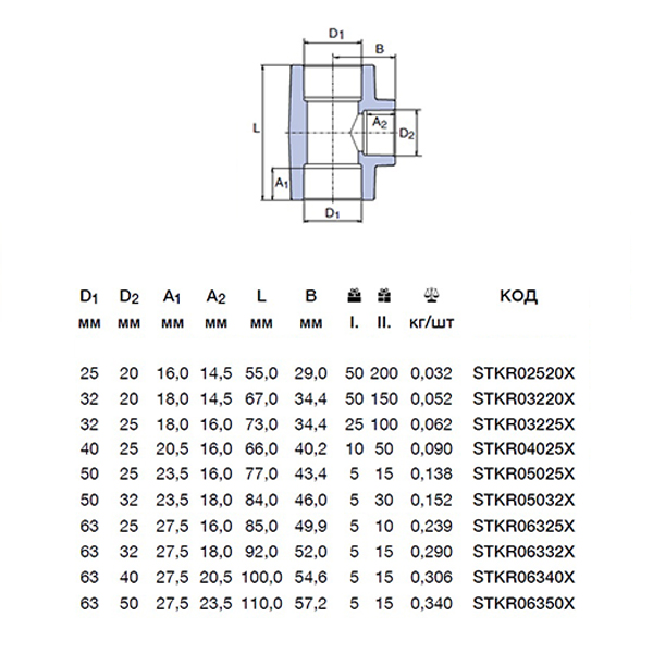 Тройник редукционный PPR Ekoplastik 32x25x32 мм STKR03225X