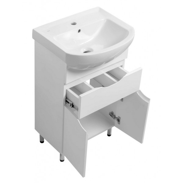 Современный дизайн тумбы сочетается с разными моделями умывальников и дополняет интерьер как в классическом, так и в минималистическом стиле. Поверхность легко очищается и сохраняет эстетичный вид в течение длительного времени.