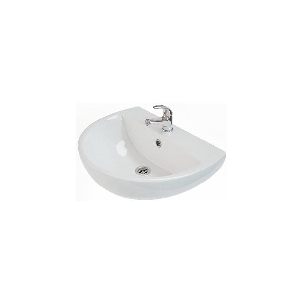 Подвесной вылитый из сантехнического фарфора умывальник KOLO RUNA 'L81155' с переливом и отверстием под смеситель. Габаритные размеры 550х450 мм.