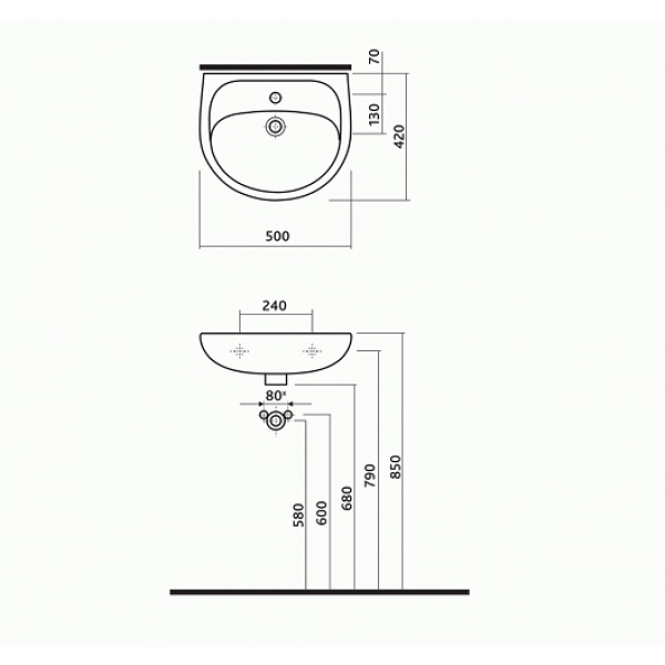 Подвесной вылитый из сантехнического фарфора умывальник KOLO SOLO '7115100U' с отверстием для смесителя по центру и переливом. Габаритные размеры 500х420 мм. Элегантный умывальник придаст Вашей ванной комнате света и простора. Модель непременно порадует Вас не только своим качеством материала, а также добавит красоты и комфорта. Весь санфаянс имеет сертификаты качества и санитарно-гигиенические заключения.