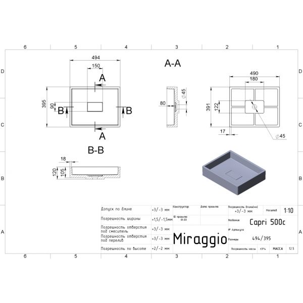 Умывальник Miraggio CAPRI изготовлен из литого камня белого цвета. Продукция производится с экологически чистых материалов. Применение индивидуальной технологии литого камня позволяет избежать присутствия любых интенсивных элементов. Удобная и современная модель удачно дополнит Ваш интерьер. За умывальником легко ухаживать, благодаря гладкой поверхности и очень просто устанавливать.