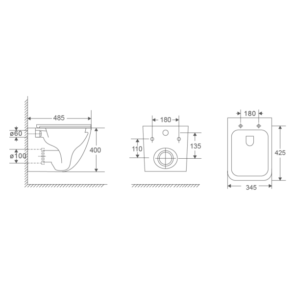 Унитаз подвесной VENTA LIST 485x345x400 Tornado 3.0