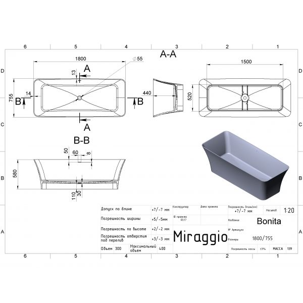 Эта модель оснащена скрытым переливом, через него вся лишняя вода сливается в канализационную трубу и предотвращает потопу. Ванна Bonita изготовлена из искусственного камня (литой мрамор) и может иметь глянцевую либо матовую поверхность. Покрытие Gelcoat ISO NPG защищает ванну от механических повреждений и имеет антибактериальный эффект.