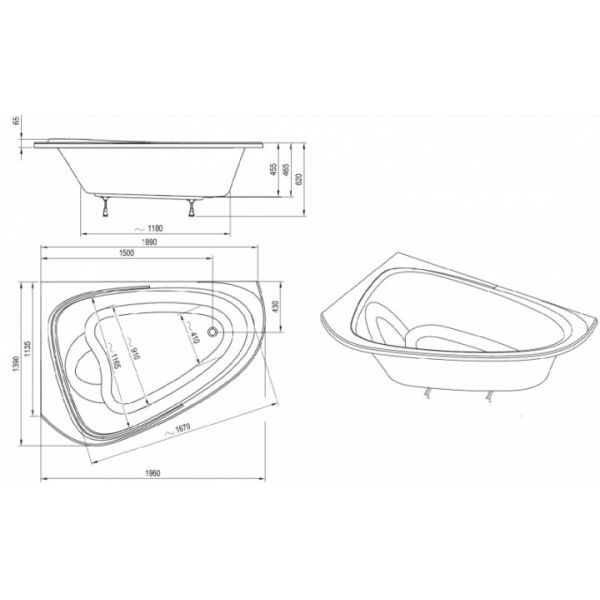 Ванна производителя Ravak серии Love Story II изготовлена из акрила, который отлично сохраняет тепло, звукопоглощающий, надежно защищен от царапин и легок в уходе, а гладкая поверхность приятно действует на кожу. Форма ванны угловая. Габаритные размеры изделия 1960x1390 мм.